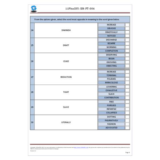 This pack contains five separate “English” papers. You will not find these questions in our on-line tests.