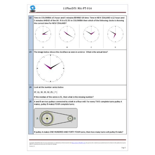 This pack contains five separate “Maths” papers. You will not find these questions in our on-line tests.
