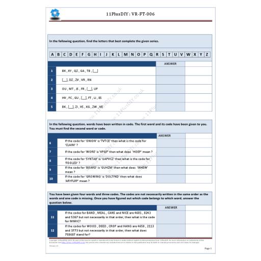 This pack contains five separate “Verbal Reasoning” papers. You will not find these questions in our on-line tests.
