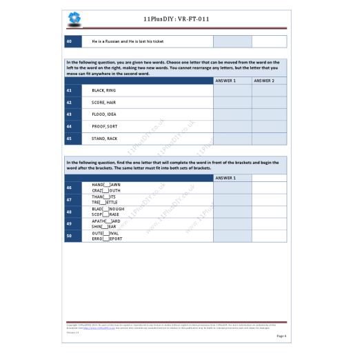This pack contains five separate “Verbal Reasoning” papers. You will not find these questions in our on-line tests.